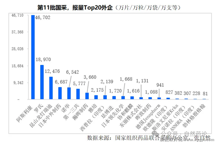 健康凯歌 2025-09-23第11批国采共有423家药企报量(按企业集团计,下同),其中,本土药企395家、外企28家。厂牌报量共39亿片/亿粒/亿袋/亿支(下文以“亿片”代称,万片亦然),其中,本土药企占71%、外企占29%。报量过亿片的企业有7家,本土4家、外企3家。