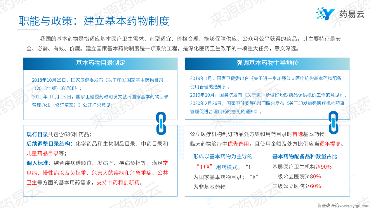 药物作为医疗服务体系的核心要素之一,是疾病预防、诊断、治疗和康复的重要物质基础和必要条件。卫健部门围绕保障药品供应、规范用药行为、提升用药质量等核心目标,推进实施了基本药物制度、药品临床综合评价、合理用药管理、短缺药保供稳价、基层药品联动管理等一系列重要举措。