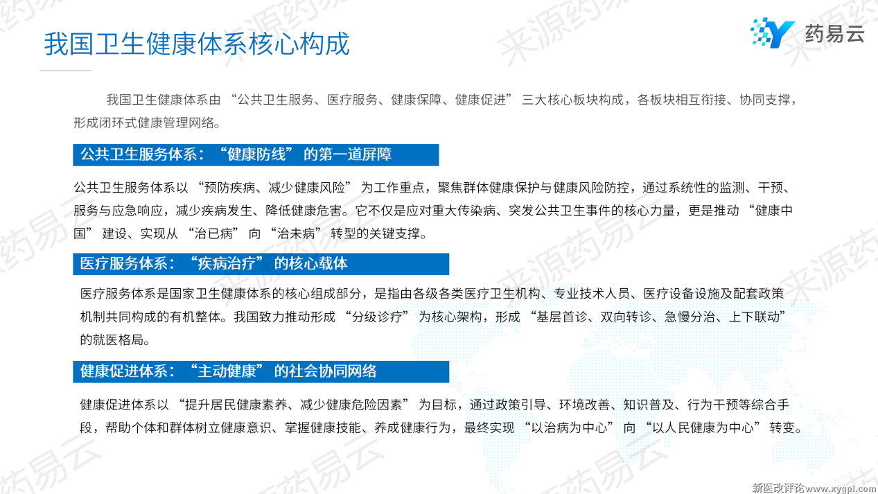 各机构围绕主要职能,各司其职,专研相关政策制定与工作部署,合力绘制我国卫生健康事业的发展蓝图,逐渐形成了我国卫生健康体系的三大核心板块,各板块相互衔接、协同支撑,形成闭环式健康管理网络。