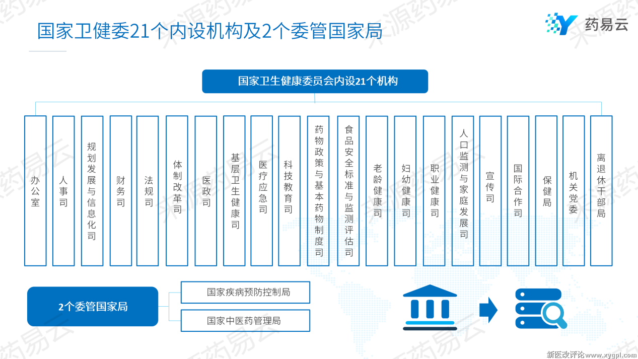 新组建的卫健委内设21个机构,以及2个委管国家局。
