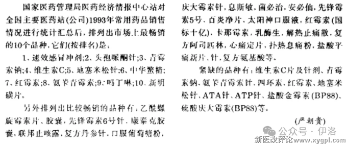 另外排列出比较畅销的品种有:乙酰螺旋霉素片、胶囊,先锋霉素 6 号针,康泰克胶囊,联邦止咳露,复方丹参针,口服葡萄糖粉,庆大霉素针,息斯敏,菌必治,安必仙,先锋霉素 5 号、白炎净片,太阳神口服液,红霉素 (国标十亿),卡那霉素,乳酶生,解热止痛散,复方阿司匹林,心痛定片,扑热息痛粉,盐酸平痛新片、针,复方氨基酸等。