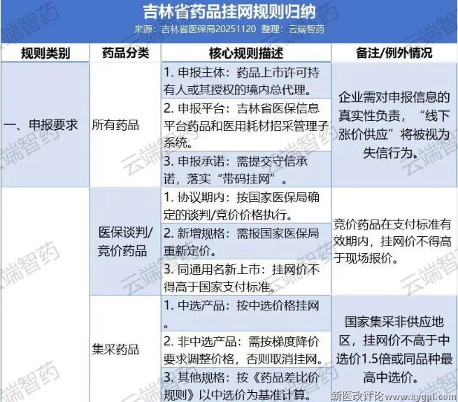 吉林挂网规则与挂网共识大同小异,主要内容归纳如下: