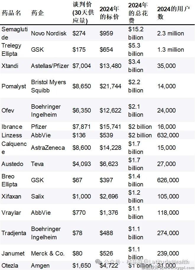 图表:美国第二轮药价谈判价格