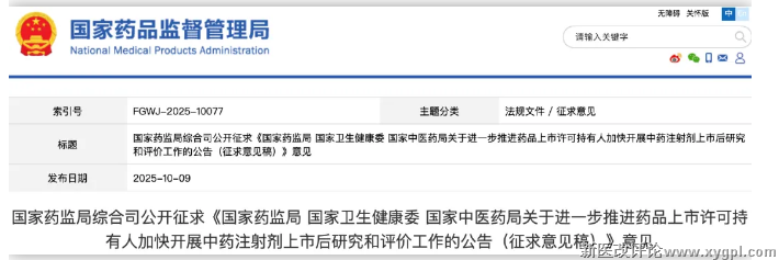 近日,国家药监局、国家卫健委、国家中医药局三部门联合发布的《关于进一步推进药品上市许可持有人加快开展中药注射剂上市后研究和评价工作(征求意见稿)》,无疑是今年中药界最重磅的消息。该文件要求,对2019年《药品管理法》实施前已上市的所有中药注射剂,持有人必须主动开展上市后研究与评价,无法提供充分安全性与有效性证据的品种,将依法淘汰。这一纸“最严监管令”,标志着整个品类将迎来一场关乎生死的“大考”。
