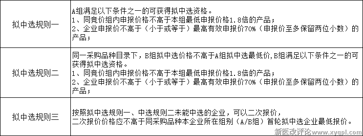 各采购品种均设最高有效申报价,原则上取"非集采挂网价加权平均数×0.5"与"集采最高中选价"中的较低值,并据此核算拟中选产品的降幅。集采按 A、B 组分别竞价,未中选企业可进行一次补报价,但补报价格不得高于同组首轮拟中选企业的最低报价。