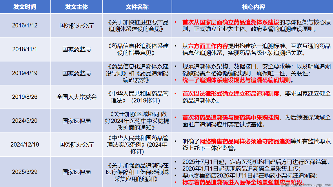 ·2024年9月,明确全面建立追溯码、 医保编码和商品码的三码合一映射库;