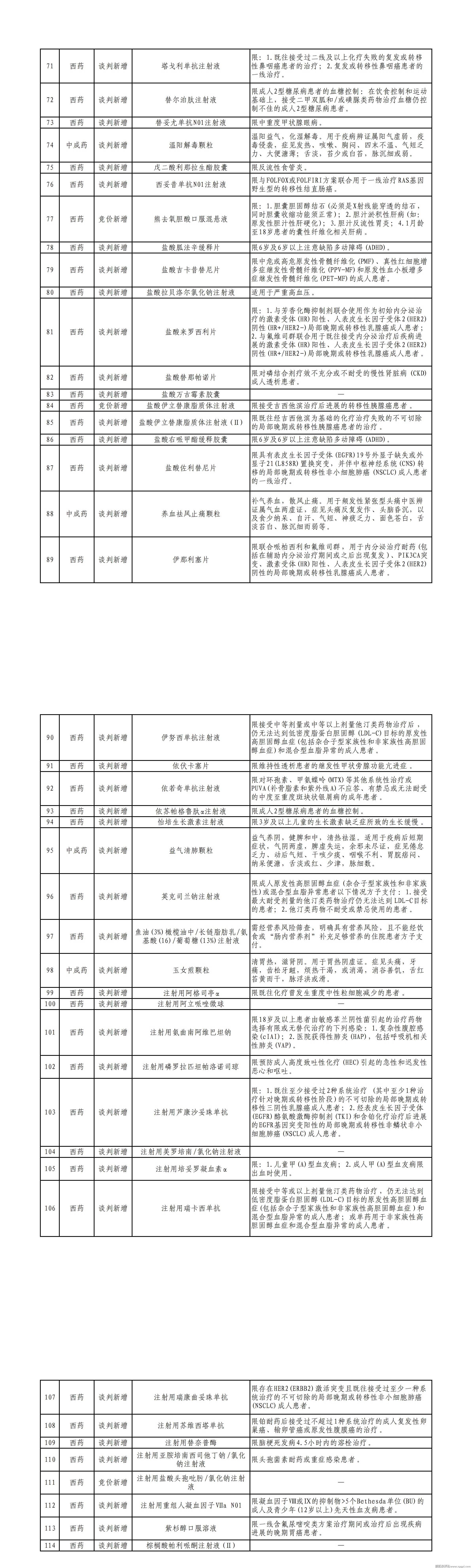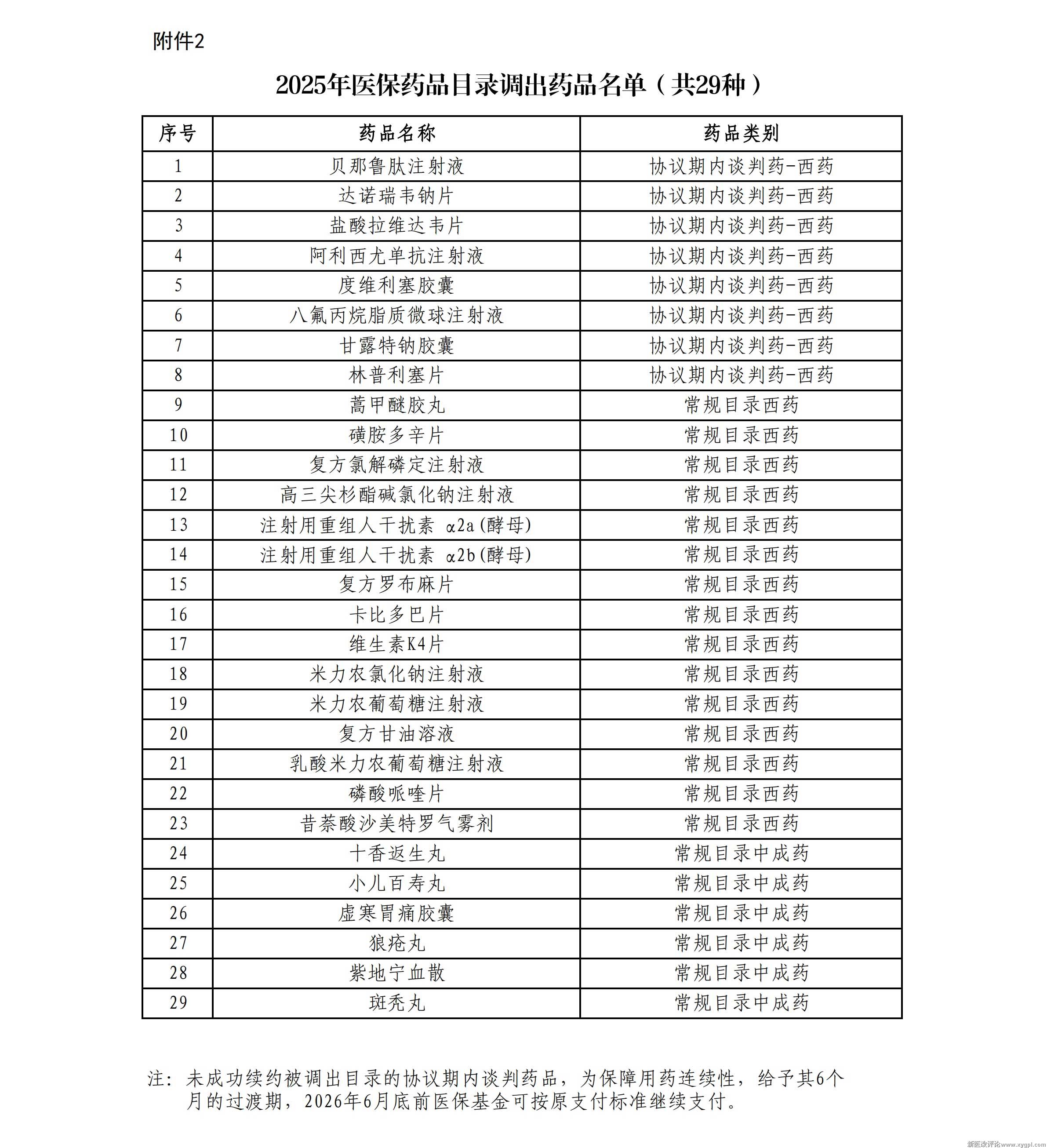 需要说明的是,医保目录常规部分沿用了原按药品名称、合并剂型的编排方式,会出现品种调出但相应编号仍保留的情况,这些品种已在国家医保服务平台药品分类与代码数据库中更新。