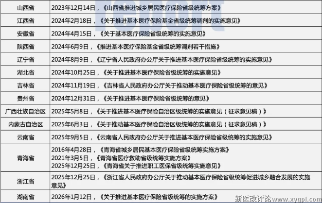 参考来源:各省政府、卫健委、医保局官网等