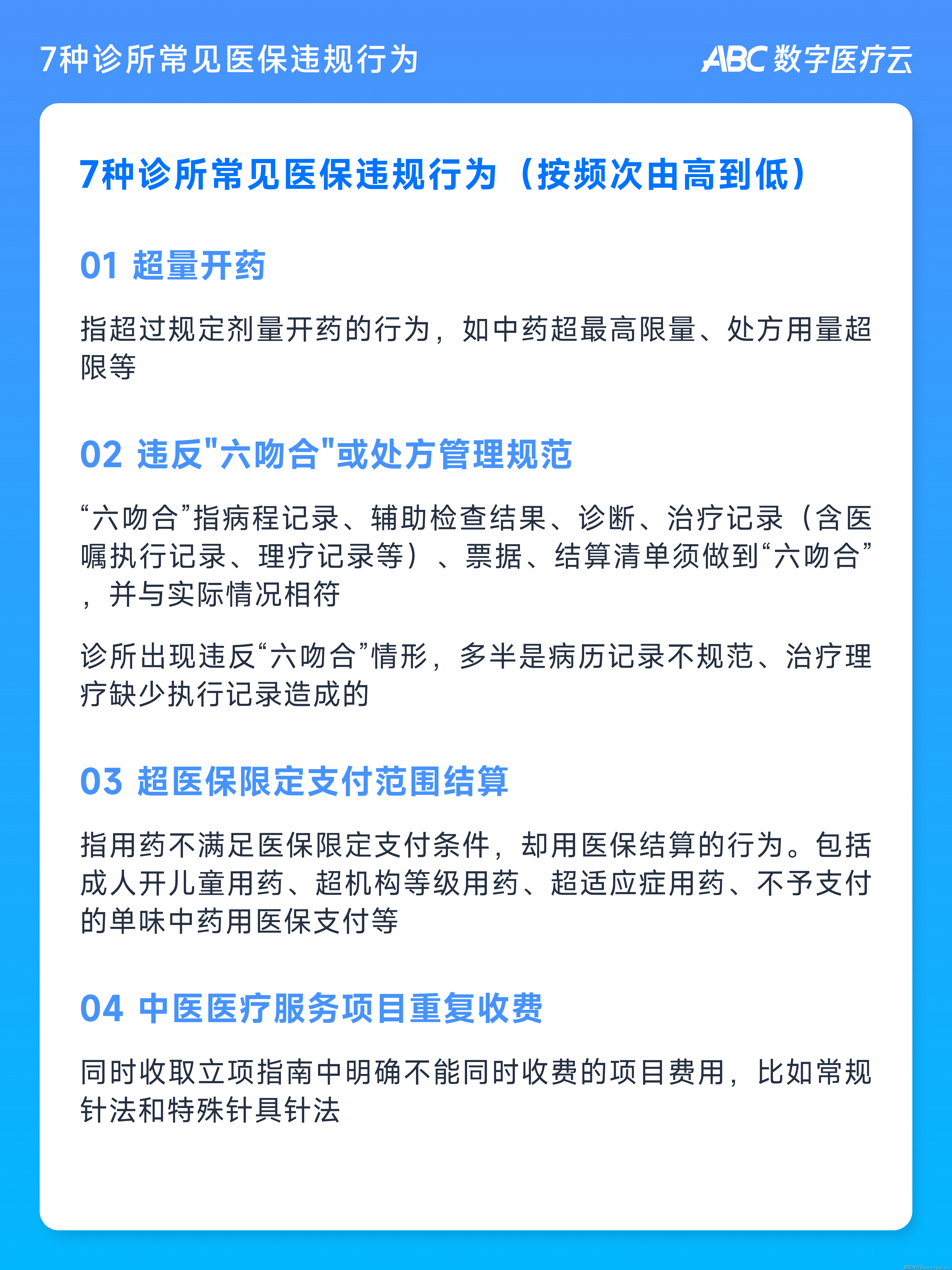 近期曝光的诊所医保违规行为,根据情节轻重,医保部门分别作出限期整改、中止协议、解除协议3类处罚。
