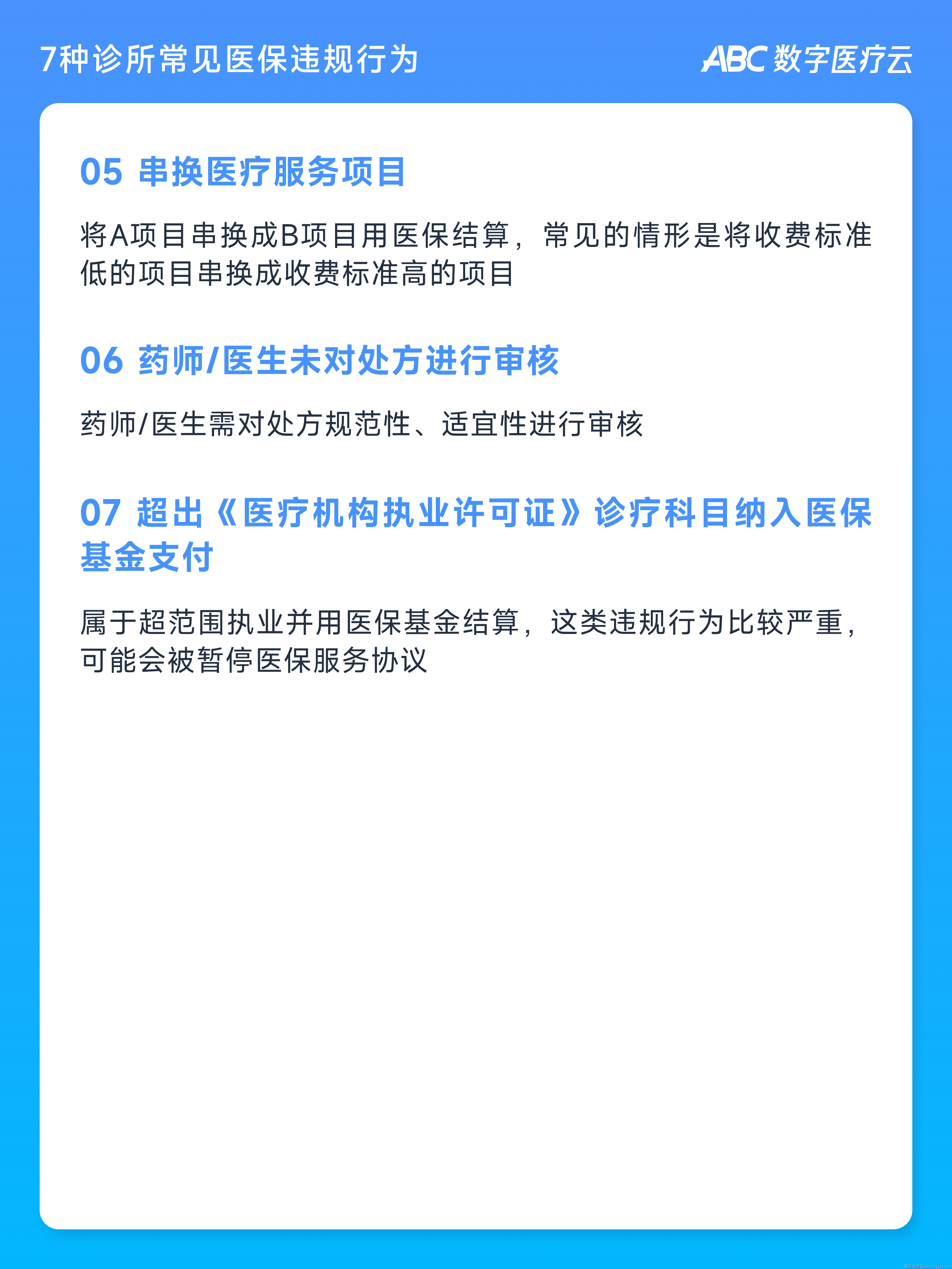 7.超出《医疗机构执业许可证》诊疗科目纳入医保基金支付