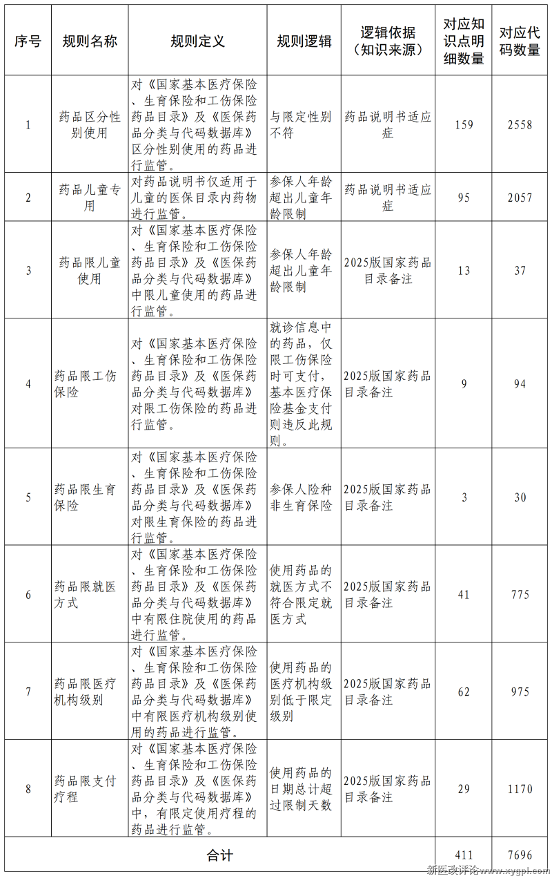 近日,我们按照《国家基本医疗保险、生育保险和工伤保险药品目录(2025版)》及最新药品分类与代码数据库,对前期公布的“药品区分性别使用”“药品儿童专用”“药品限儿童使用”“药品限工伤保险”“药品限生育保险”“药品限就医方式”“药品限医疗机构级别”“药品限支付疗程”8项药品类规则及对应知识点进行更新修订,现面向社会公开。