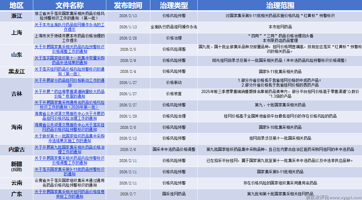 进入2026年不到三个月,药品价格治理的版图已快速扩容。据不完全统计,截至3月4日,已有15个省份相继启动价格治理工作——从东部沿海到中西部地区,从集采品种到挂网药品,一张药价监管网络正加速成形。