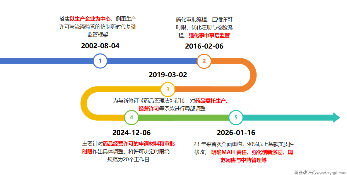 2002 年版《条例》以仿制药管理为基础,重点围绕生产许可与流通环节实施管理;2026 年新版《条例》则完成了从“行政许可体系”到“法定权利体系”的根本性转型: