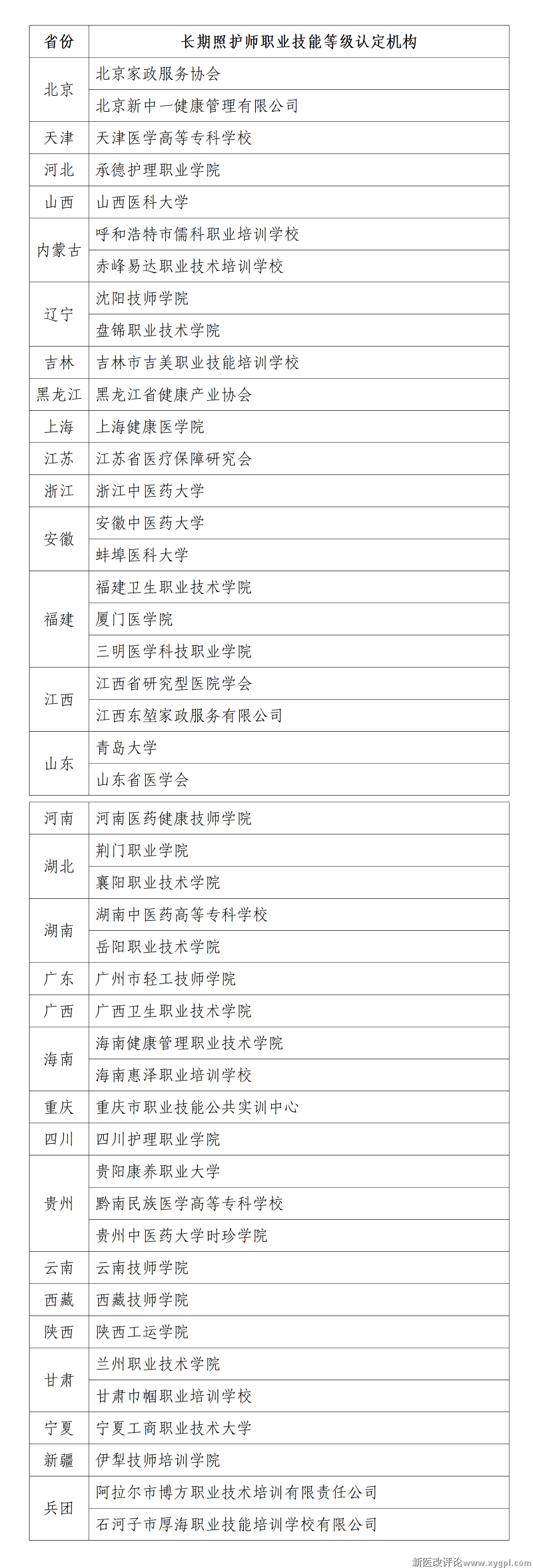 各省(区、市)目前已组织开展长期照护师职业技能等级认定的机构名单如下,具体信息可登录技能人才评价工作网(www.osta.org.cn)查询。有意向报考人员可关注各认定机构查阅考试报名通知,相关信息也将通过国家和省级医保部门网站同步转发。