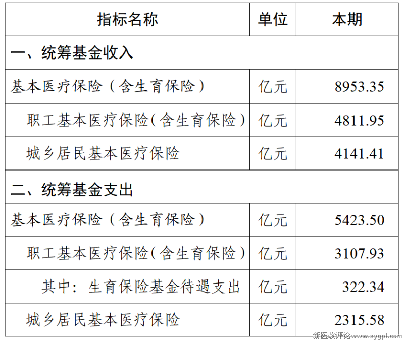 注:1.自2024年起,我局公布数据为基本医疗保险统筹基金收入、支出,不含职工基本医保个人账户收入、支出。