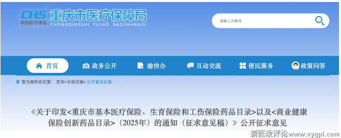 近日,重庆市医保局发布《关于印发 <重庆市基本医疗保险、生育保险和工伤保险药品目录> 以及 < 商业健康保险创新药品目录 >(2025 年)的通知(征求意见稿)》,面向社会公开征求意见,标志着地方医保药品目录与国家新版目录的衔接进入落地阶段。
