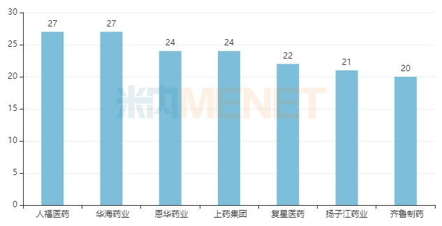 从企业过评情况看,人福医药、华海药业、恩华药业、上海医药、复星医药、扬子江药业、齐鲁制药7家药企(以集团计)已过评的神经系统药物品种数达20个及以上,其中人福医药、华海药业以27个品种领跑。