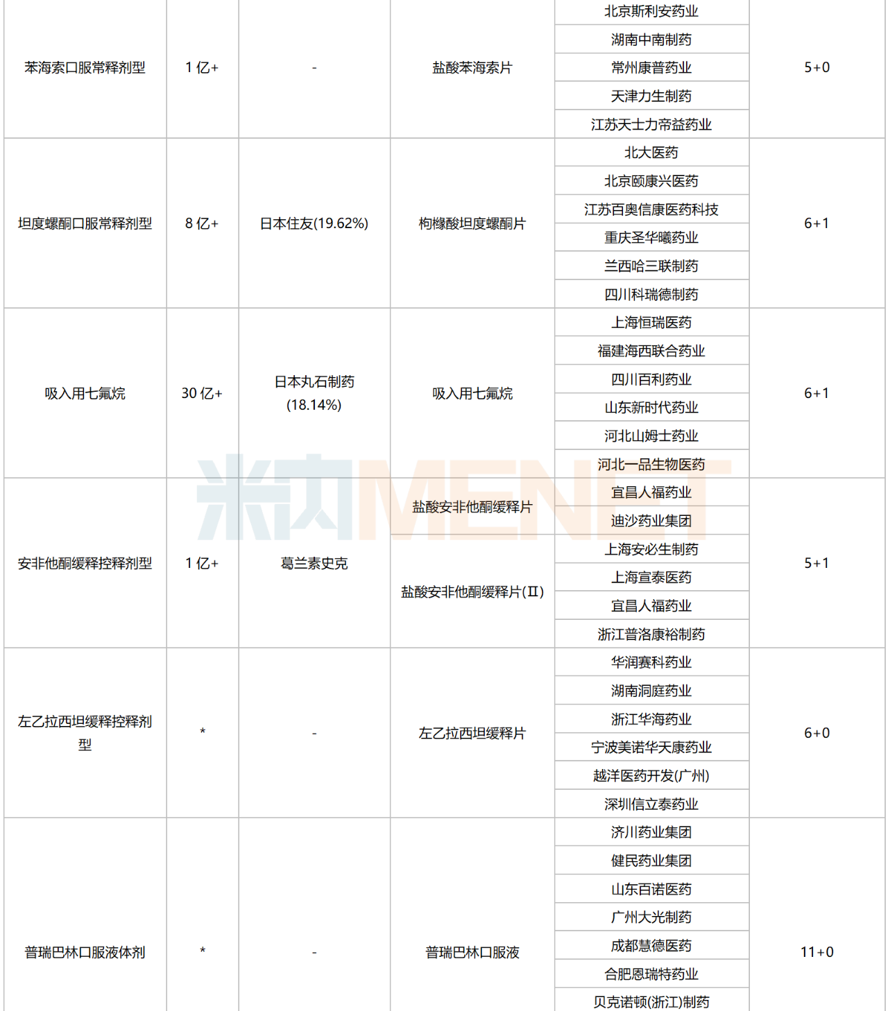 25个通用名药品2023年在中国公立医疗机构终端的销售额合计超过100亿元,其中吸入用七氟烷超30亿元,新斯的明注射剂超10亿元,坦度螺酮口服常释剂型,帕利哌酮缓释控释剂型超8亿元。