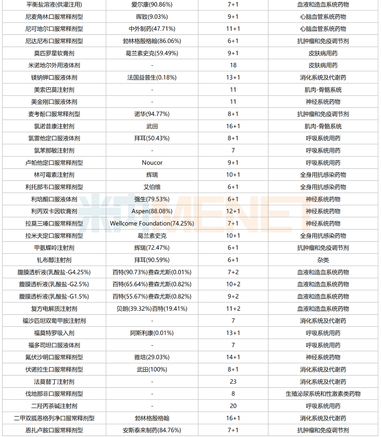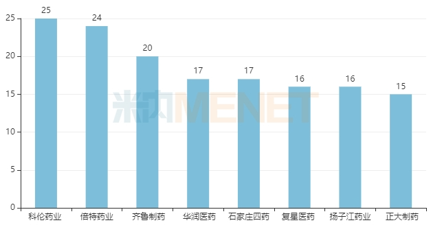 从企业情况看,预计在第十一批国采中,科伦药业、倍特药业、齐鲁制药、华润医药、石家庄四药、复星医药、扬子江药业、正大制药等为“主力军”,目前满足7家及以上的竞争条件的过评品种分别有25、24、20、17、17、16、16、15个。