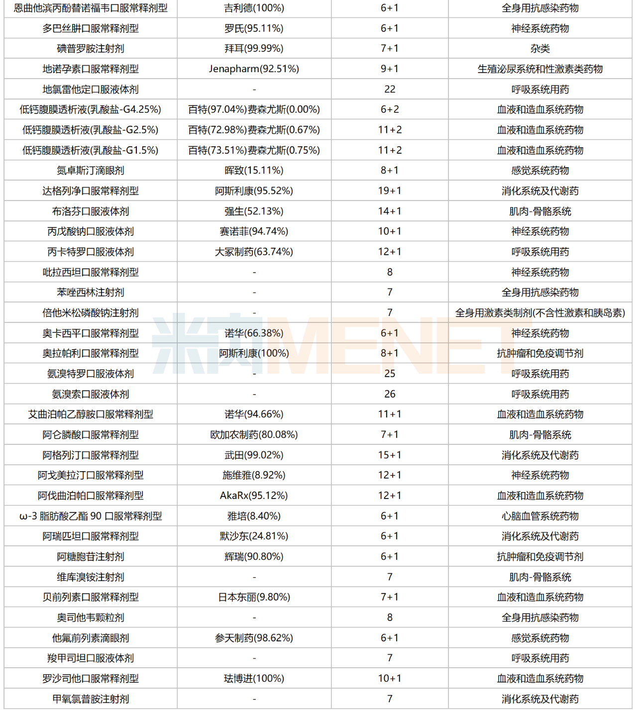 符合申报资格企业数达7家及以上且未纳入国采的化药(详细表格见文末)