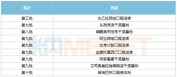 在国家已开展的九批化药集采中,口服液体剂共有9个品种被纳入,包括左乙拉西坦口服溶液、头孢克洛干混悬剂、磷酸奥司他韦干混悬剂、阿立哌唑口服溶液、拉考沙胺口服溶液、盐酸托莫西汀口服溶液、阿奇霉素干混悬剂、艾司奥美拉唑镁肠溶干混悬剂、普瑞巴林口服液体剂。