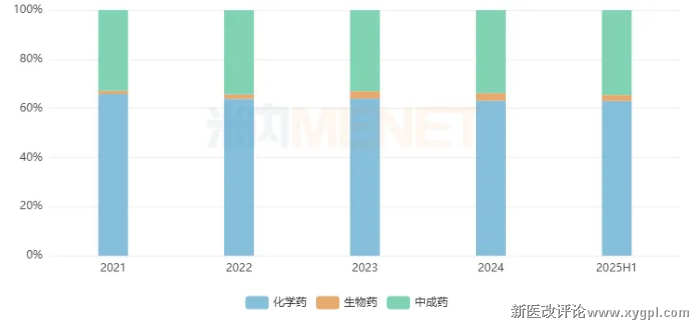 从药品类型来看,化学药占比最大,近年均超过60%;中成药以超过30%位居第二,占比有所提升;生物药占比2%左右。从在销品种数量来看,产品超过10000个,品牌超过30000个。