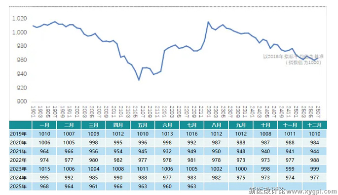 从零售药店产品价格来看,2025年7月产品价格指数为963点,较6月环比增加3点,较去年同期下降20点,价格指数稳中有降。
