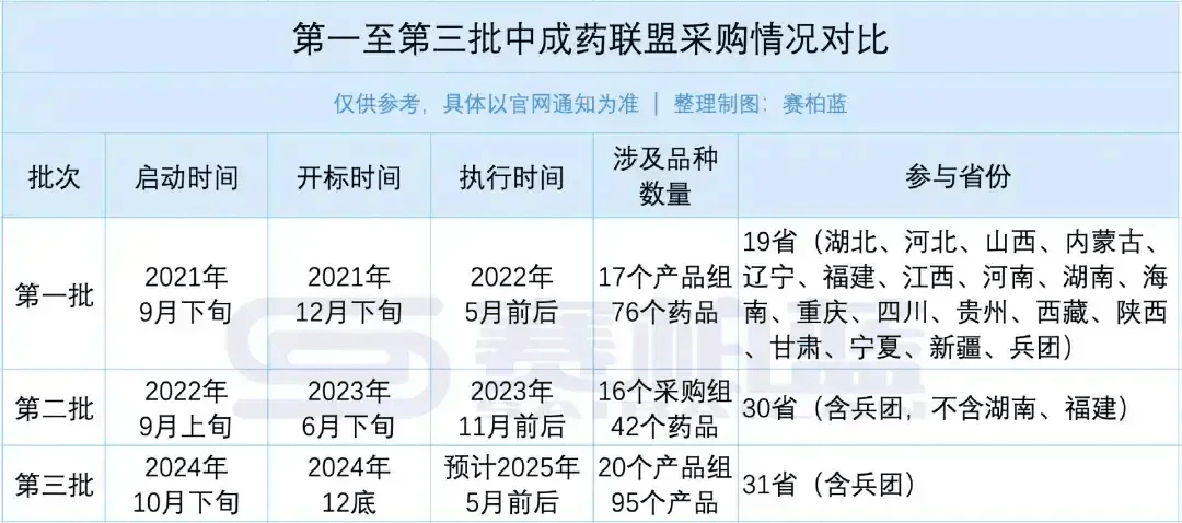 此前,湖北牵头三轮中成药集采,品种与参与省份均在扩围——从第一批到第三批,参与省份从19省到30省再到31省,涉及品种从17个产品组76个药品到16个采购组42个药品再到20个产品组95个产品。