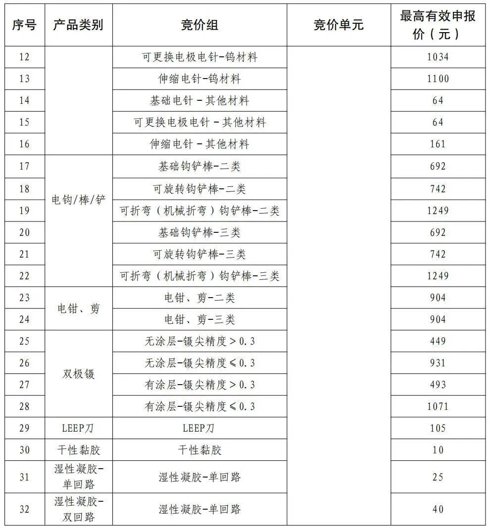 产品类别、采购分组、竞价单元及最高有效申报价情况如下: