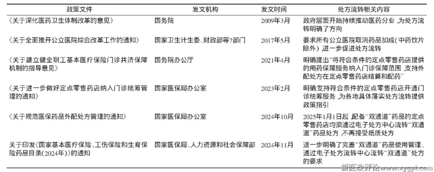 2000年2月,国务院体改办等部门印发《关于城镇医药卫生体制改革指导意见》,提出实行医药分开核算、分别管理,切断医疗机构和药品营销之间的直接经济利益联系,这一政策是支持处方流转的源头。此后,国务院和医药卫生相关主管部门相继出台政策,在顶层设计上对处方流转提出了更明确的要求,处方流转政策走向更加明晰(见表1)。