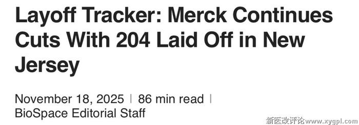 据了解,默沙东计划在其全球总部Rahway基地裁减204名员工,解雇将于2026年2月20日至5月11日进行。这是默沙东今年在该基地进行的第二轮裁员。