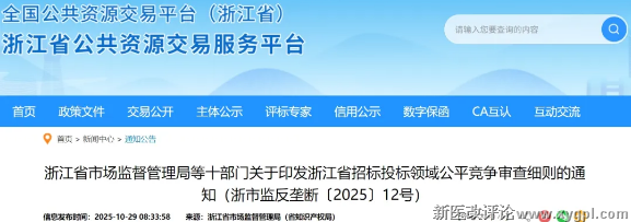 近日,浙江省市场监管局等十部门联合印发的《浙江省招标投标领域公平竞争审查细则》(下简称《细则》)将于2025年12月1日正式施行。