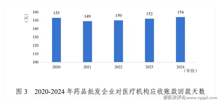 2024年,中国医药商业协会对31个省(自治区、直辖市)630家药品批发企业应收账款情况开展典型调查。数据显示,对医疗机构应收账款回款天数平均154天,较之2023年增加2天。