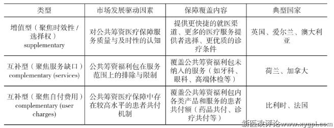 三是对公共筹资医疗保障中患者需承担的共付费用进行补偿的互补型(聚焦自付费用)。其中,前两类在各国更为普遍,聚焦自付费用的互补型的普及程度则远不及前两者。