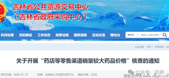 1月27日,吉林省公众资源中心,发布《关于开展“药店等零售渠道销量较大药品价格”核查的通知》,共有47个品种(官方公布48个,实际有1个重复),挂网价格高于药店零售价格1.3倍以上。