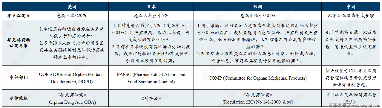 国内外罕见病药物认定标准、审评部门及法律依据