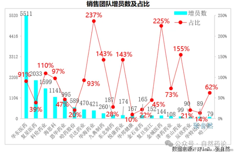 增加500-1000人的有2家,即恩华药业(增995人)和哈药股份(增589人),分别增加了47%和20%。