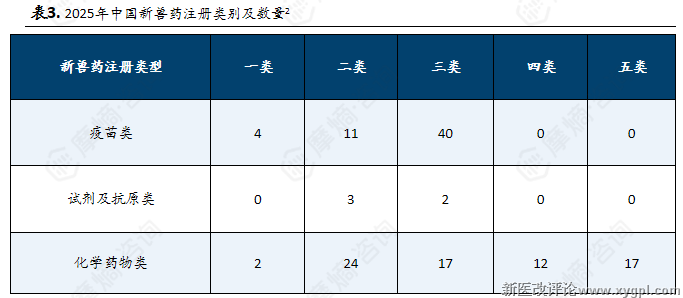 3. 新兽药注册分类及数量结构
