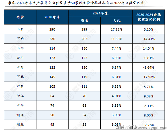 中国兽药生产企业省份分布格局与变化趋势:头部省份产能集中;中部及南方省份增速亮眼,传统大省企业数量回落。