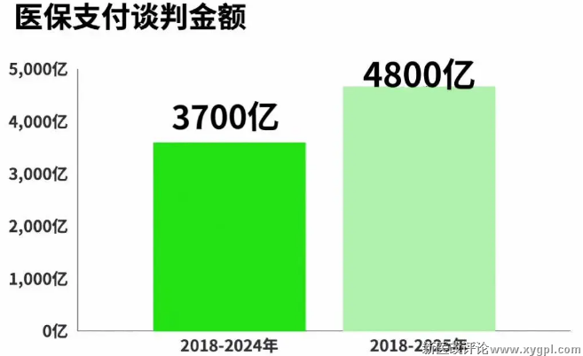创新药销售额,一年新增1600亿。在药品采购中,创新药成为受益最大的部分。据统计快报,2018年至2025年,医保谈判新增药品协议期内销售额超过7000亿元,其中医保基金支出超过4800亿元。2024年,这一数据分别为5400亿元和3700亿元。这意味着,仅仅一年的时间,医保目录内的创新药销售额增加了1600亿,医保支出增加了1100亿。医保正成为创新药最给力的买家。